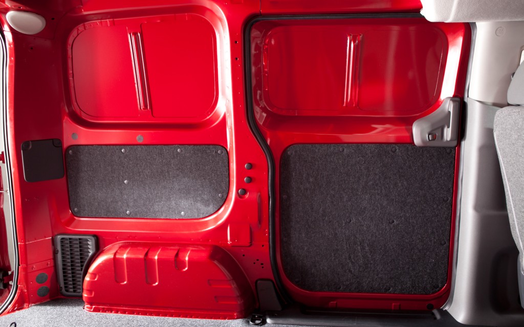 Nissan is offering the NV200 in two trim levels—S and SV—and both will be quite affordable, if sparsely equipped. There are several options, including cruise control ($200); back-door privacy glass ($190); Bluetooth connectivity ($250); an Exterior Appearance package ($190), which paints the bumpers, doorhandles, and mirrors body color; and a Technology package ($950), which includes navigation, Nissan’s RearView camera, satellite radio, and a 5.8-inch touch screen.